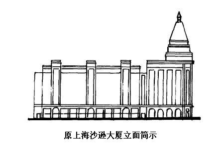 在重商竞争头脑的支配下,建筑作为一种永久性的广告效果是再合适不过的了。因而在某些建筑的建造上是不惜功本的。如在外滩这个旧上海的金融中心区,西方殖民者们把他们当时国内最流行的建筑式样都照式照样地搬了进来。虽然由于当时外滩寸土如金,大多数的建筑均只有其窄面朝向黄浦江,主要因面江地价贵(按宽度算)腹地地价便宜所致。世界各地亦是如此。但建筑物立面都讲究横三段与竖三段的对称构图及各部分之间的严格比例,高台基、敞门廊、古典柱式、屋顶显著的标志物、檐部和柱头的精致石雕花纹、室内装修材料的精致考究等等都显示了幢幢大楼的与众不同,显示了其主人的豪华、气派。尤其汇丰银行大厦,1925年新建在原银行旧址上,五层,中央七层,建筑面积达32000平方米,半球型屋顶,钢框架结构,外墙为金山石饰面,模仿欧洲古典的砖石结构,横向三段划分:中部有贯穿二至四层的仿古罗马科林斯柱式双柱廊,基座分为三个拱券,上部穹顶使人联想起古罗马的万神庙。室内亦采用古典主义的形式,如爱奥尼克式的柱廊,藻井式天花板等,大厅内的柱子、护壁、地坪均采用大理石贴面,装修极为考究,显得富丽堂皇,不仅装有暖气,还安装了当时最先进的冷气设备。而且建筑横向占地宽敞,成为外滩建筑群中的主体建筑,当时被诩为“从苏伊士运河到远东白令海峡的一座最讲究的建筑”。充分显示出作为英国当时在沪的金融集团总枢纽及外商在华最大的银行的财产和实力。(如下图)